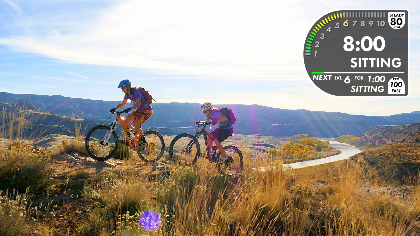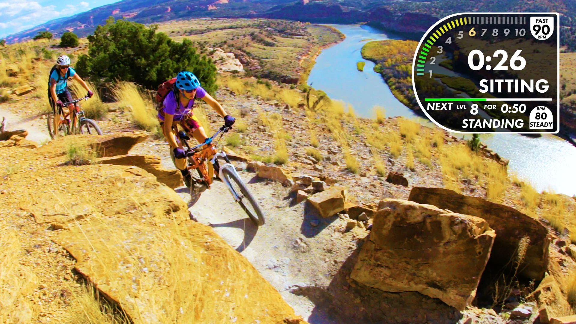 A custom "Heads Up Display" and cadence matched original music soundtrack allows you to pedal to the beat to drive your workout like never before!